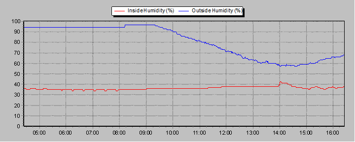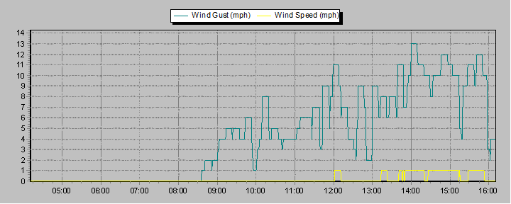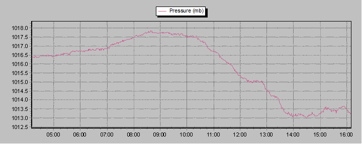 These graphs present temperature, pressure, rainfall, and wind speed trends for the last 12 hours.