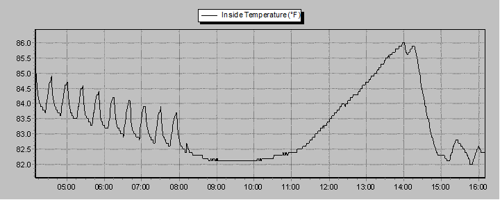 The thumbnail graphs are sampled every ten minutes. Click on a thumbnail to display the corresponding larger graph in the panel above it. The large graphs are sampled every minute.